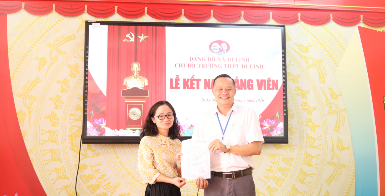 Chiều ngày 24-4-2026, Chi bộ Trường THPT Di Linh (xã Di Linh) tổ chức lễ kết nạp đảng viên cho cô Ngô Thị Thơ – Đoàn viên, giáo viên xuất sắc, ưu tú.