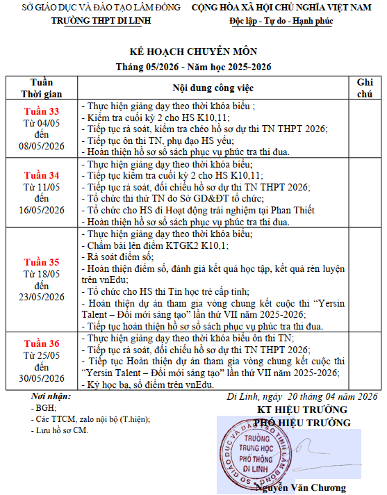 KẾ HOẠCH CHUYÊN MÔN THÁNG 5.2026