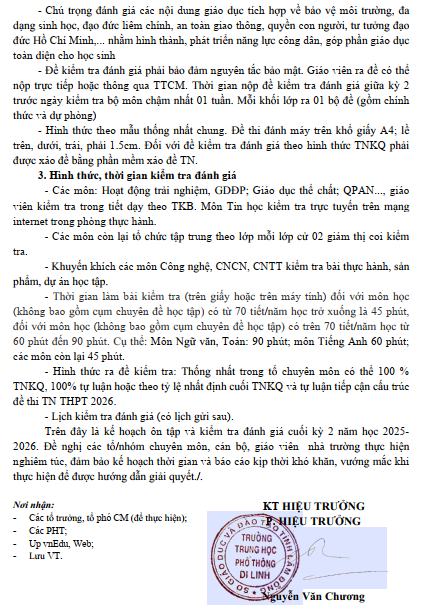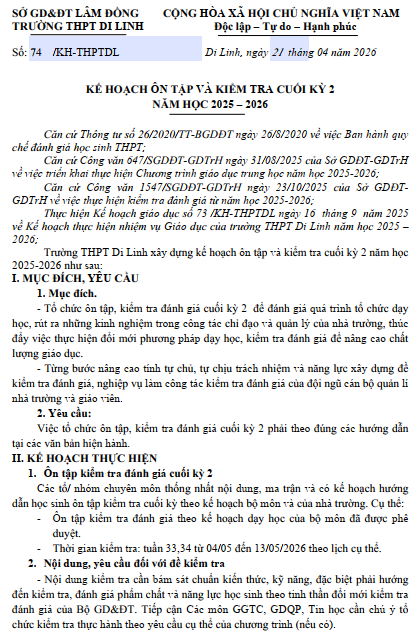Kế hoạch ôn tập và kiểm tra cuối học kì 2 (2025-2026)