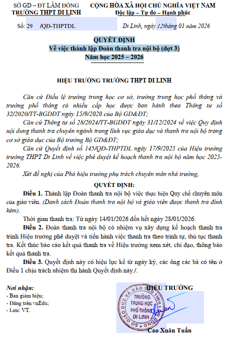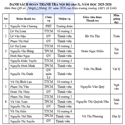 THÔNG BÁO KẾT QUẢ KIỂM TRA NỘI BỘ ĐỢT 4 NĂM HỌC 2025-2026